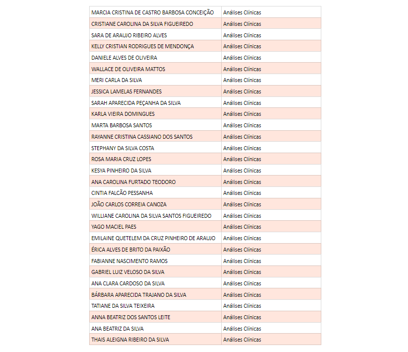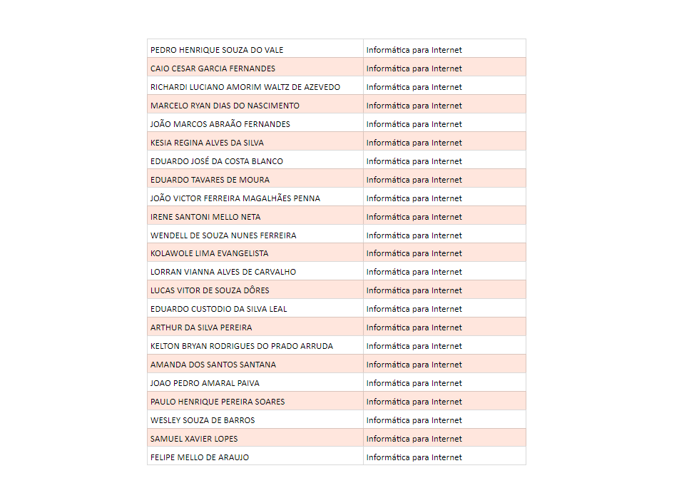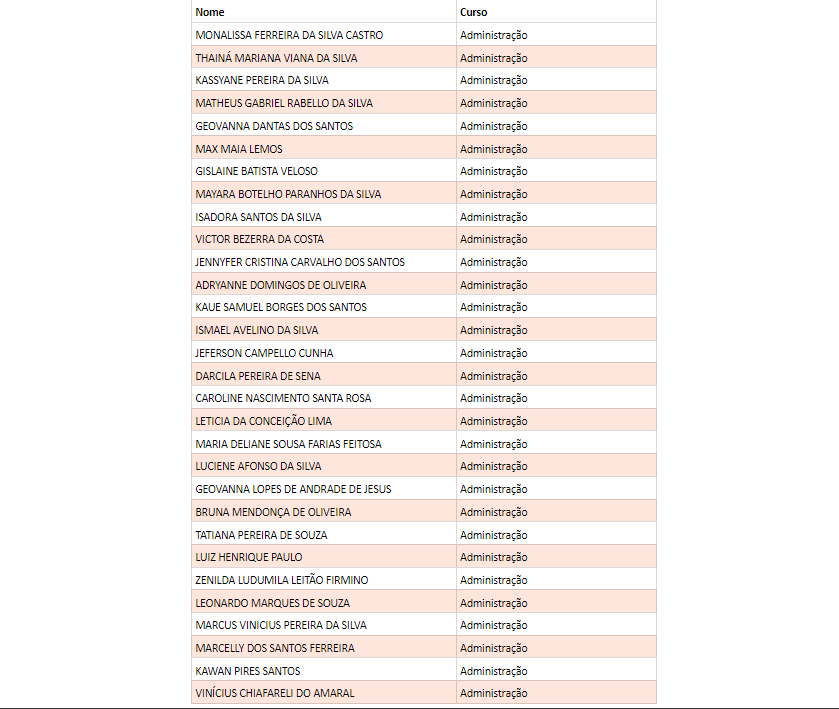 Confira o nome dos sorteados por curso:
