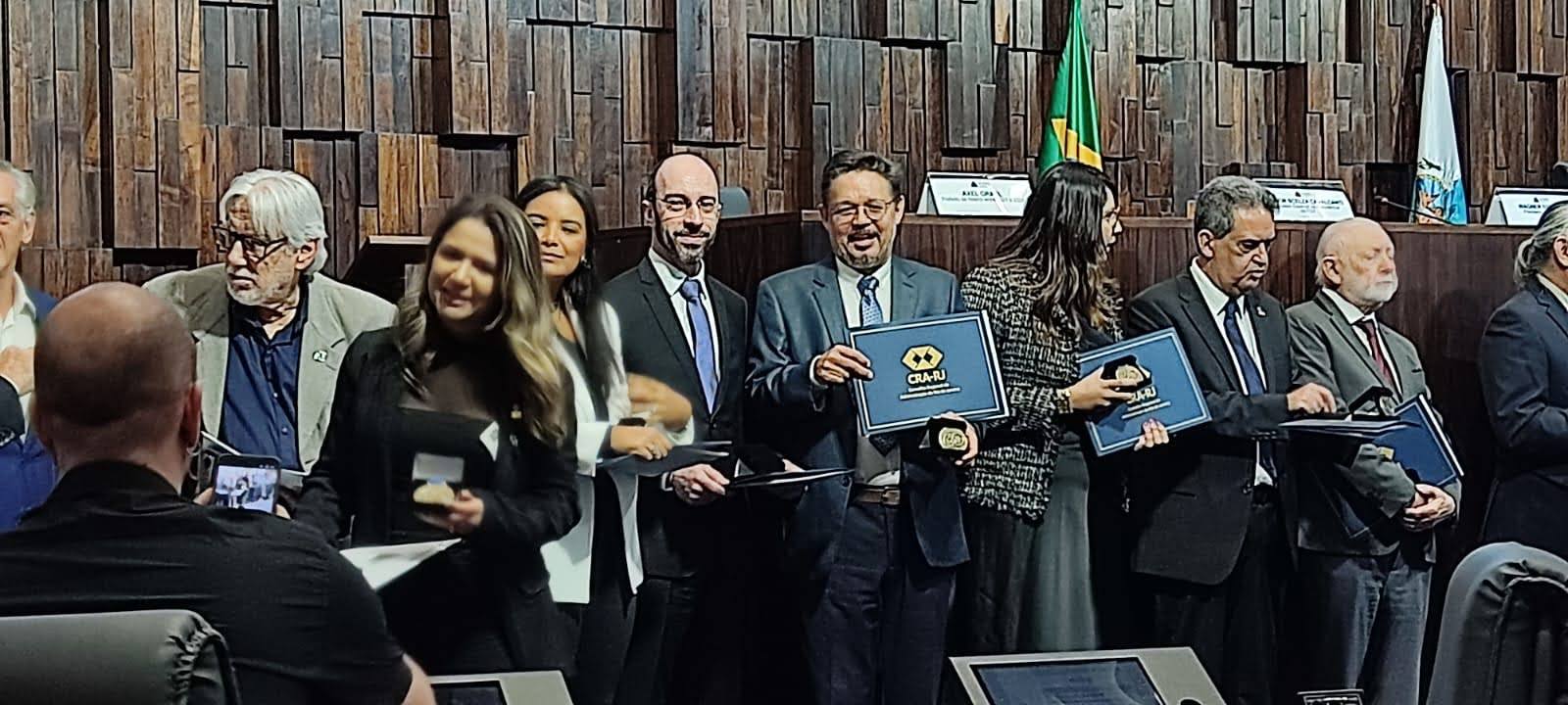 A Moção de Mérito foi entregue por Wagner Siqueira (Presidente do CRA-RJ), André Corrêa (Deputado Estadual) e Axel Grael (Ex-prefeito de Niterói).