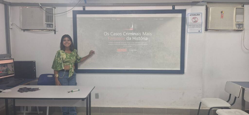 Já o trabalho de Tayane, que aborda casos criminais famosos da história, apresenta organização textual, hierarquia visual e clareza na exibição das informações, resultando em uma proposta informativa e funcional.