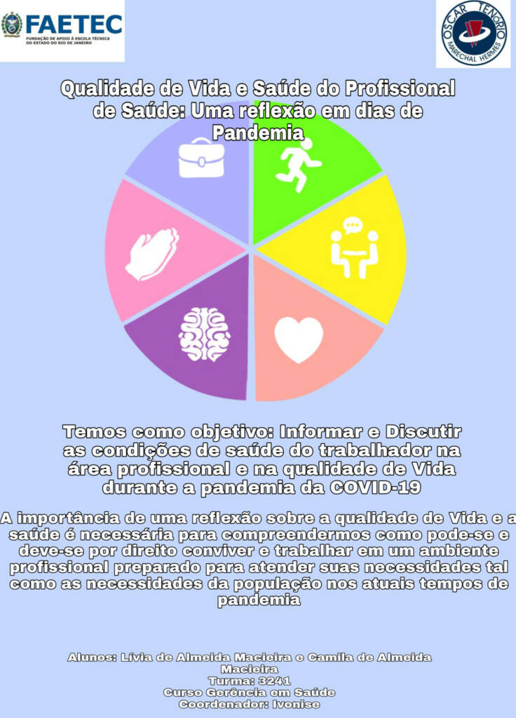 Alunas: Camila de Almeida Macieira e Lívia de Almeida Macieira – Tema do TCC: Qualidade de vida e saúde do profissional de saúde: Uma reflexão em dias de pandemia – Orientadora: Prof.ª Ivonise Paz